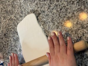 みんなで生地を協力して伸ばしながら、
