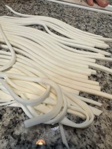 そして、米粉のうどんをこねて、伸ばして、切っていく時間。