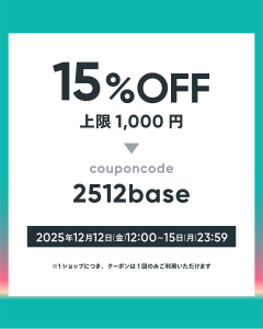 12/12〜12/15の期間限定で、BASE公式クーポンも使えます。